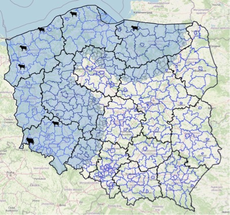 Łącznie w latach 2024-2025 odnotowano 11 ognisk BTV. Wystąpiły one na terytorium czterech województw: dolnośląskiego, zachodniopomorskiego, warmińsko-mazurskiego i pomorskiego. Niestety, obostrzenia rozciągają się na sąsiednie województwa – wykrycie ogniska choroby niebieskiego języka wiąże się z wyznaczeniem strefy o promieniu 150 km.